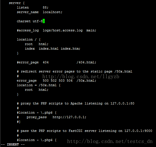 主要是修改server配置节的内容,按字母i进入编辑模式