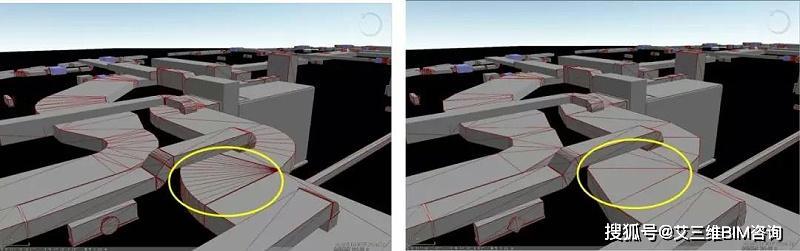 - 原生LOD(Level of Detail)技术。BIM软件中的三维对象是参数化的,比如圆柱体,用圆心、半径、高度来描述,但导入GIS系统要三角化成三角网,在三角化时,利用此技术可生成多个不同细节层次的模型,即将BIM模型解析出不同的显示精度和显示层级。