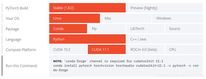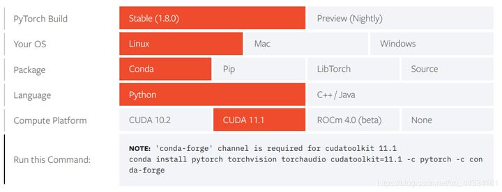 - 目前最新的是 CUDA11,但是Pytorch 官网写的对于 11.1 的支持如下: