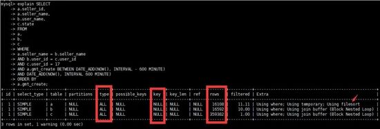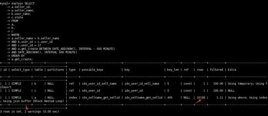 因存在a表和b表关联,将a和b表seller_name字段创建索引