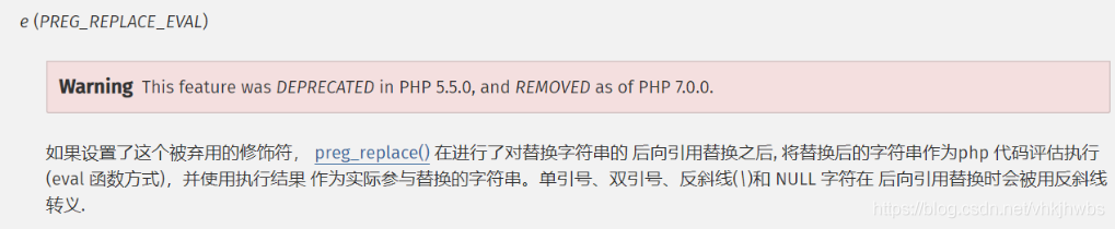 e :在进行了对替换字符串的 后向引用替换之后, 将替换后的字符串作为php 代码评估执行(eval 函数方式),并使用执行结果 作为实际参与替换的字符串。