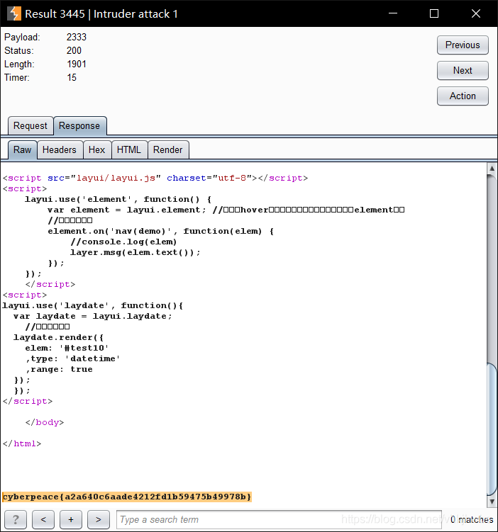 先用 burpsuite 爆破id,再id=2334时有变化,查看response,发现了flag: