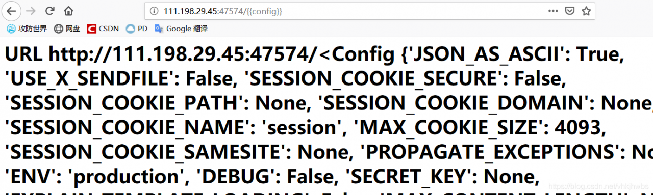 没提示变量的名字,所以干脆去掉变量名,构造/{{config}},没想到直接输出了全局变量的信息: