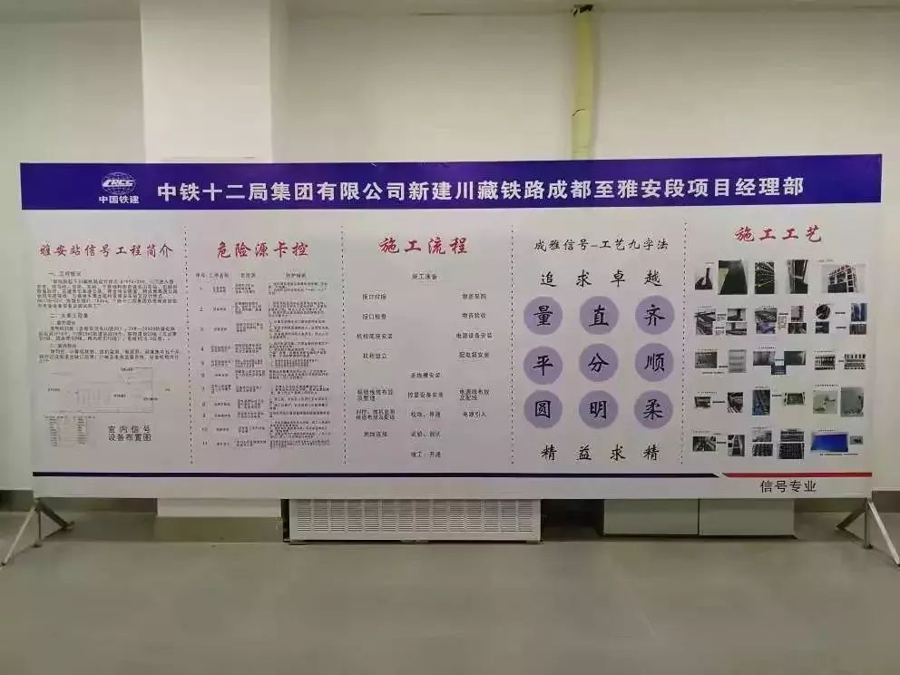 成雅铁路站后弱电系统集成工程由中铁十二局集团电气化工程有限公司负责施工。在施工中,项目部严格执行工艺标准,其中通信、信息、信号等专业施工和配线,采用国家下发的细部工艺标准施工,并在中国铁路成都局集团有限公司首次进行了应用。