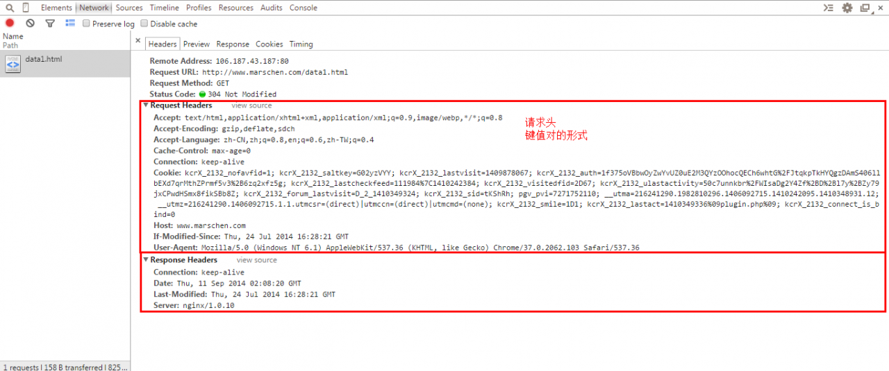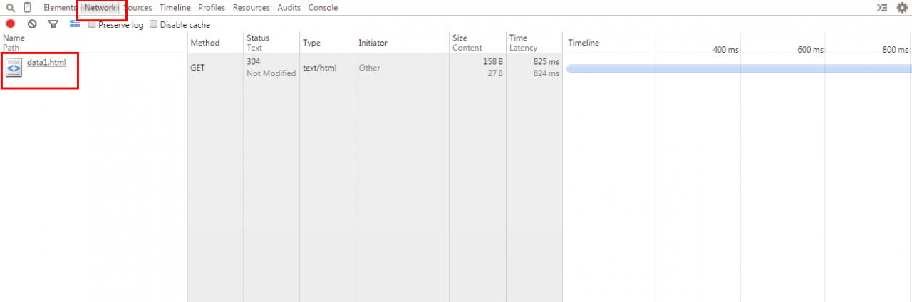 打开开发者工具, 刷新页面之后会出现下述状况. data1.html就是发往服务器的请求