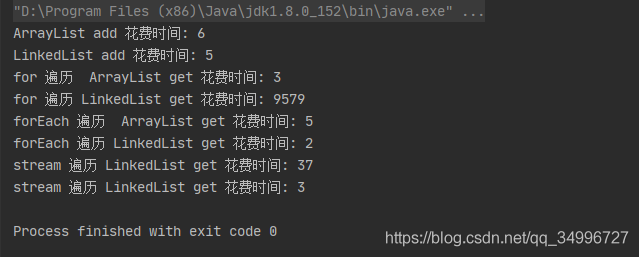 System.out.println("forEach 遍历 LinkedList get 花费时间: " + (endTime - startTime));