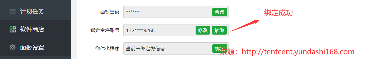 8、绑定宝塔面板账号