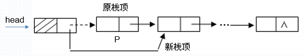 head->next=p->next; //将头指针指向原栈顶的下一个元素的data域