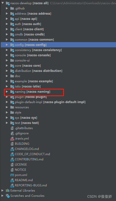 下载nacos源码如下,可以知道naming包下面就是和服务发现和注册相关的请求