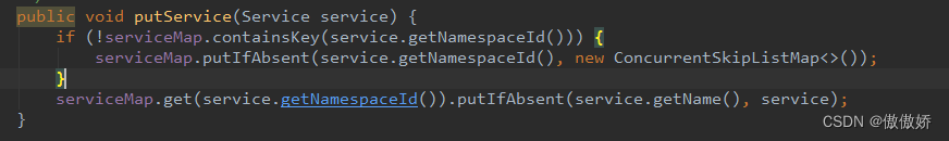 首先知道,serviceMap是一个双层map结构,外层key为namespace,内层key为group::serviceName。