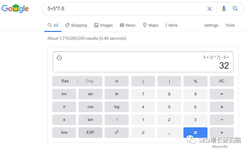 结果中会显示一个科学计算器,可以用它进行更高级的计算。