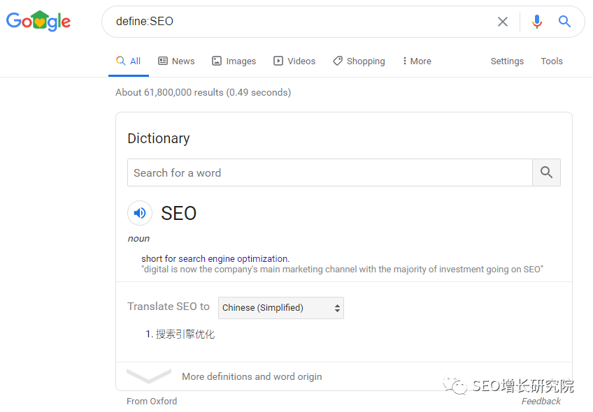 如果你遇到不理解的单词,使用define指令,谷歌会告诉你的它的含义及发音等,注释内容来自牛津辞典。