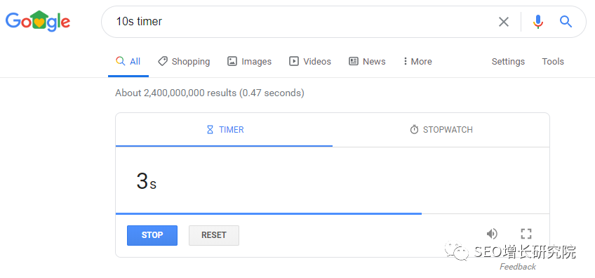 如果你需要计时,但是手机不在身边,直接搜索时间+timer, 到时谷歌会自动提醒你。