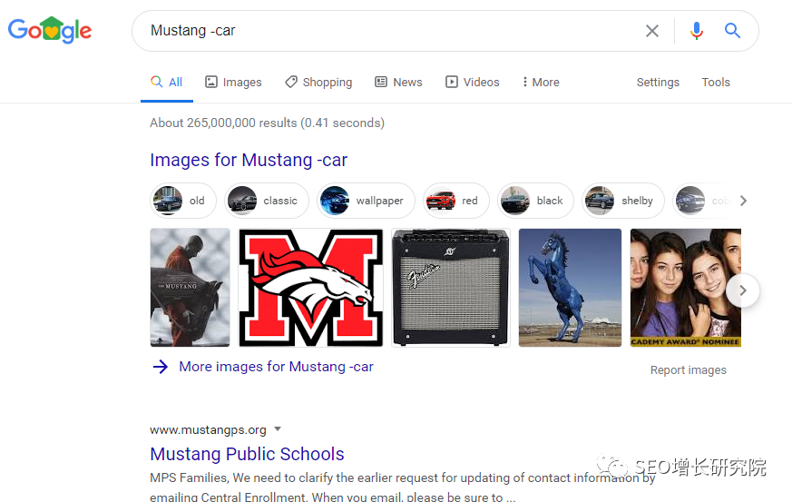 如果你只想找关于马的内容,使用连字符可以让谷歌忽略关于汽车的信息。