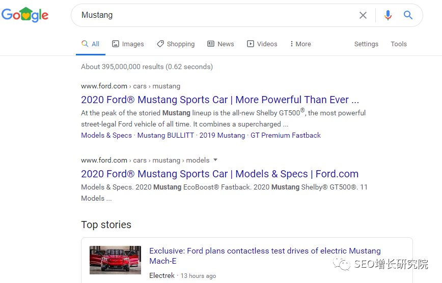 比如,当你谷歌搜索Mustang时,你可能会找到福特汽车或马的结果,大部分是关于汽车的。