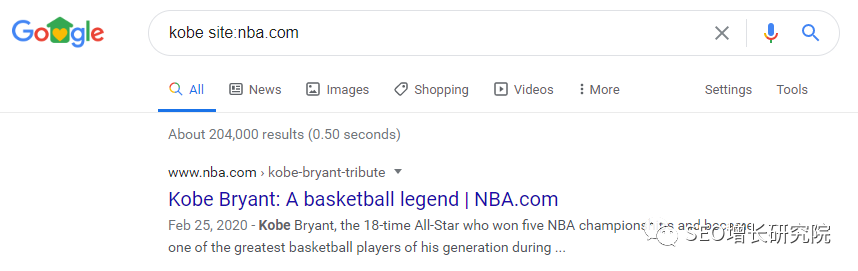 比如,Kobe site:nba.com,只在nba.com这个网站上搜索关于科比的内容。