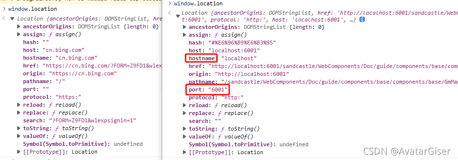 如上图和示例,可以看出从 window.location 对象的属性。该对象还可获取当前站点的 ip、port 等信息。