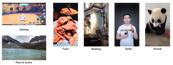 比如UGC的视频里,包含用户拍摄的自然风景、食物、建筑、人像、动物等各种题材的内容,甚至有些不是自然拍摄,而是游戏录屏,并且还会加上五花八门的字幕。