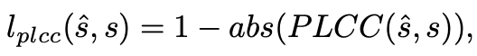 PLCC表示一个batch内预测值和groudturthlabel的相关性,其值归一化至[-1,1],PLCC值越大性能越好,因此PLCC损失表示为: