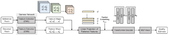 采用的Transformer架构遵循标准的Vision Transformer,包含L层多头注意力模块(MSA)和多层感知器模块(MLP)。Transformer与MLP头连接,用于回归最终的主观评分。