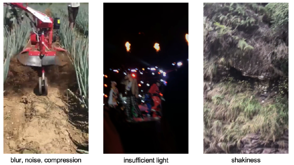 另外,因为UGC拍摄有各种情况,用户手一抖,视频就变模糊,噪点、过曝、抖动、失真,各种问题交织在一起,算法很难评价。