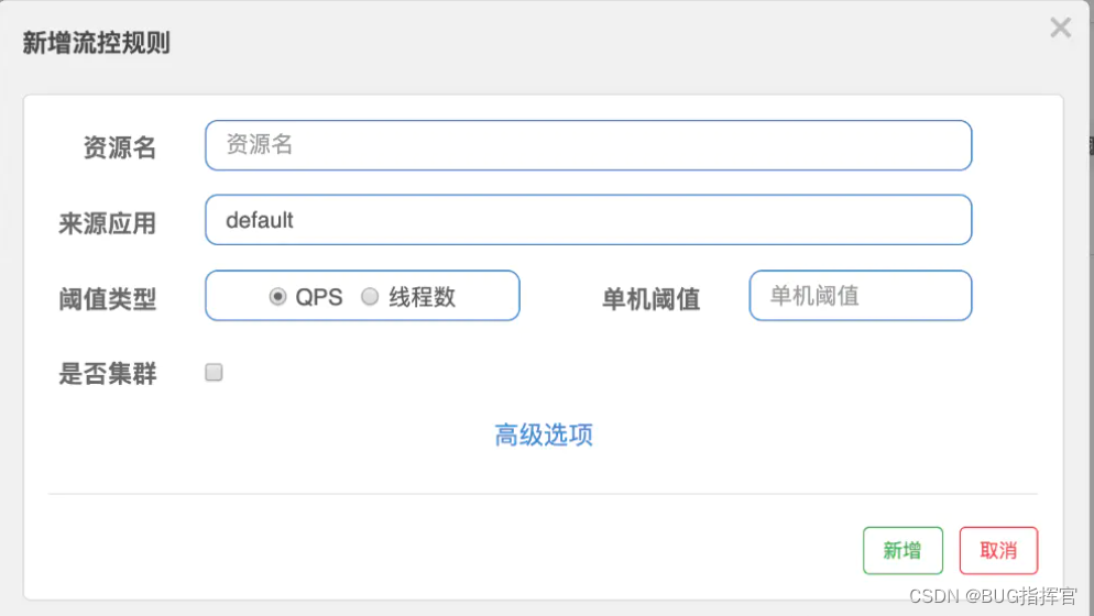 - 针对来源:Sentinel可以针对调用者进行限流,填写微服务名,默认为default(不区分来源)