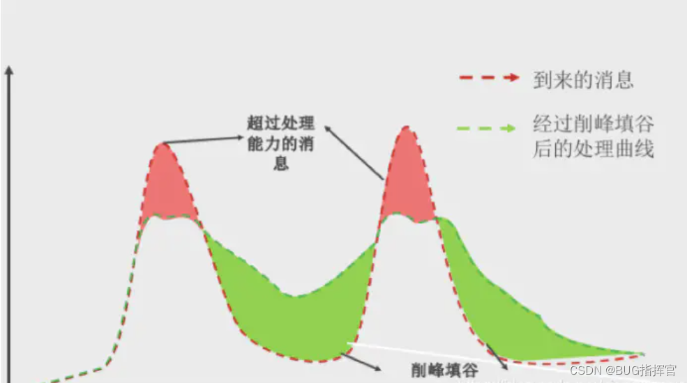 使用Sentinel的这种策略, 简单点说, 就是使用一个时间段(比如20s的时间)处理某一瞬时产生的大量请求, 起到一个削峰填谷的作用, 从而充分利用系统的处理能力, 下图能很形象的展示这种场景: X轴代表时间, Y轴代表系统处理的请求.