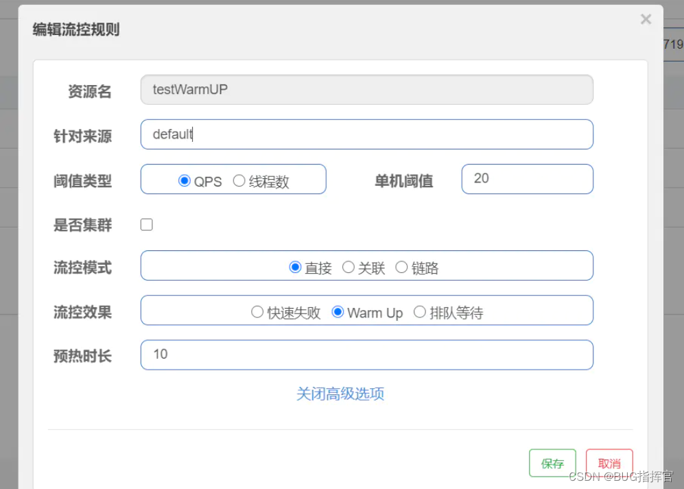 | controlBehavior | 流控效果(直接拒绝 / 排队等待 / 慢启动模式) | 直接拒绝 |