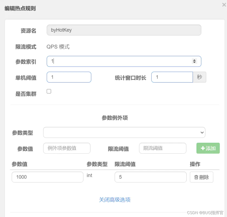ParamFlowRule pRule = new ParamFlowRule("byHotKey")