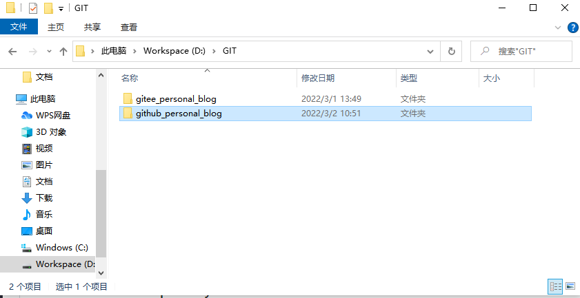 创建文件夹 gitee_personal_blog