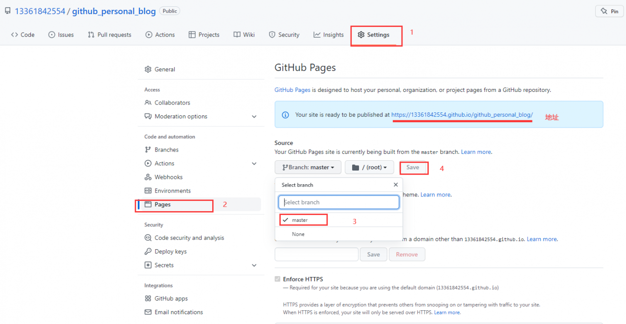 进入 github_personal_blog 仓库,设置 setting, 找到 GitHub Pages