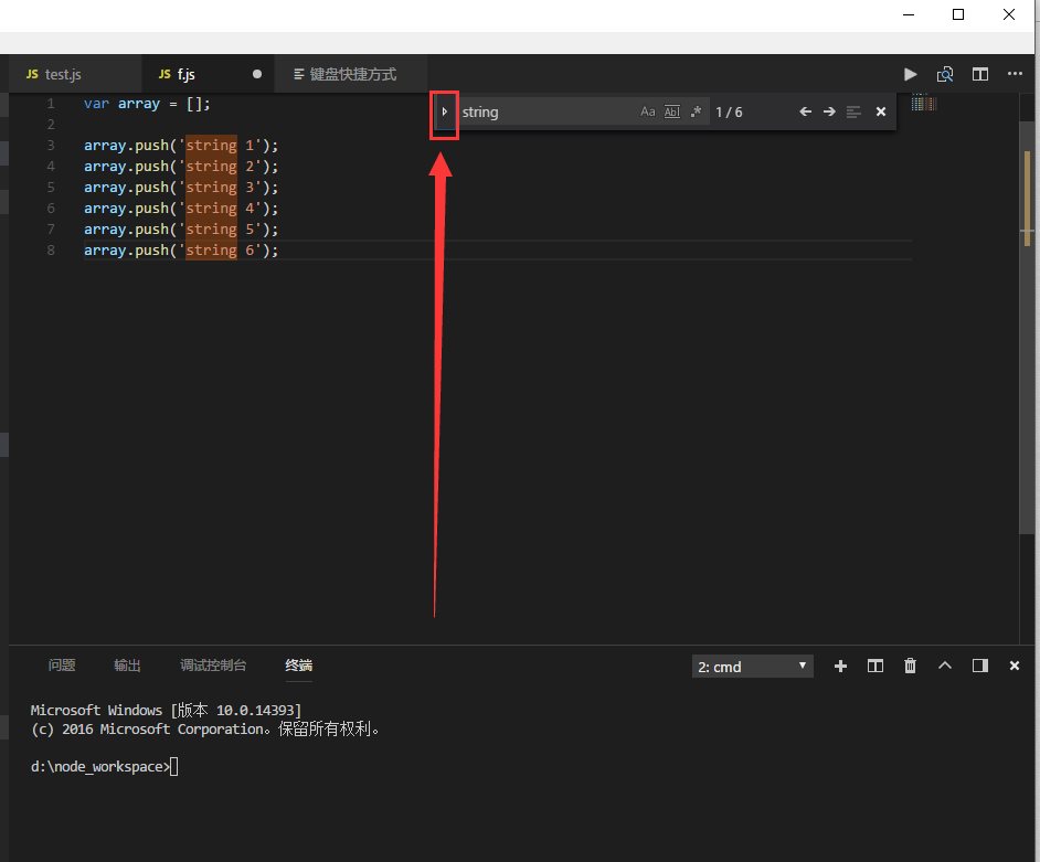 1、按ctrl+f,可以搜索当前页面,然后按搜索框左边的小三角符号,可以切换成替换模式。有时候使用字符串替换,比多光标方便,但是注意别不小心替换掉不想替换的内容。