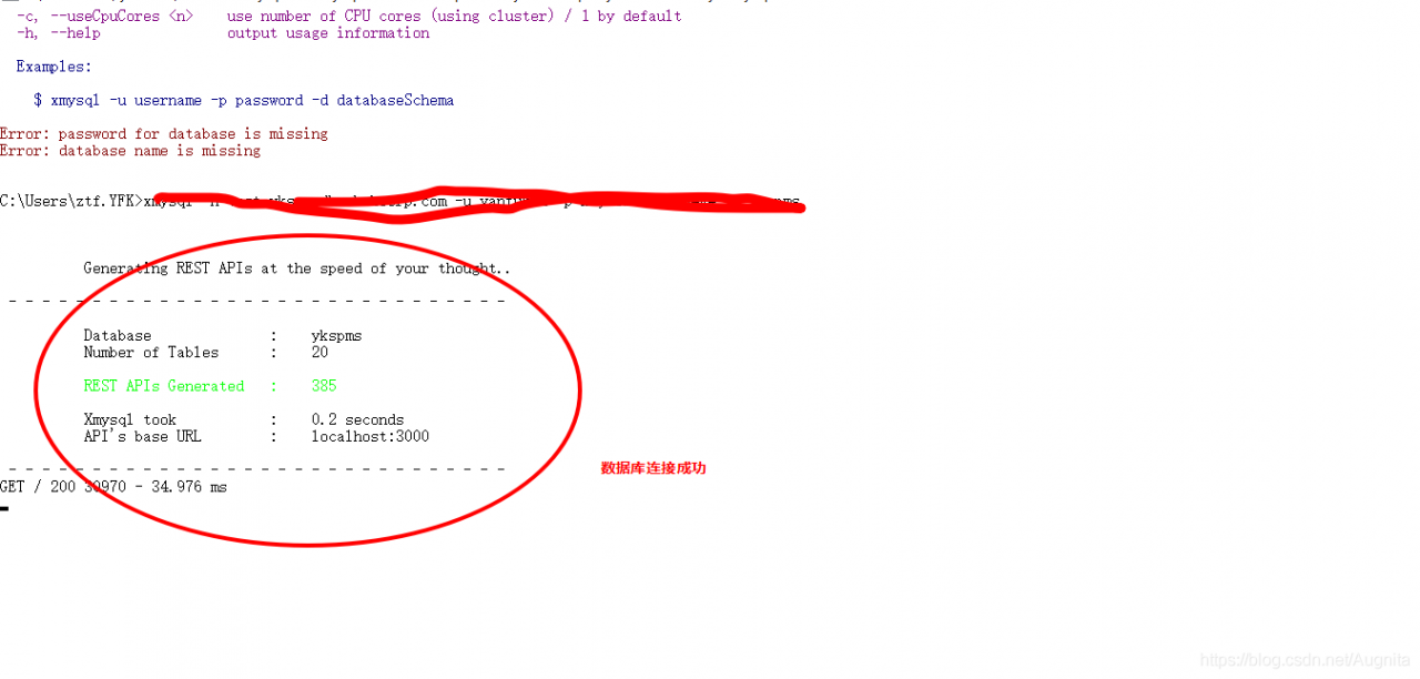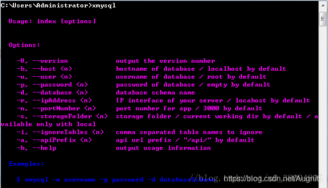 命令行安装xmysql:npm install xmysql -g: