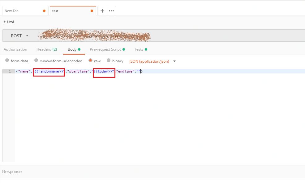 上面pre-request脚本设置了两个环境变量,使用的时候用两层大括号括起来就好了,如下图: