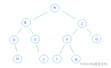 由遍历的先后顺序可知,所以先根结点A,然后左子树根结点B,接下来左D,接下来H;接着B节点的右E,接下来I;然后根结点A的右子树根结点C,接着根结点C的左节点F,F的左子树J,接着右节点K,接着根节点C的右子树G;