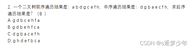 由题目选项可知本题考点是:先、中、后序的遍历结果;又因进一步考的是遍历顺序的最后一个节点;因此我们参照先、中、序的顺序,a.先序遍历(根左右)b.中序遍历(左根右)c.后序遍历(左右根);