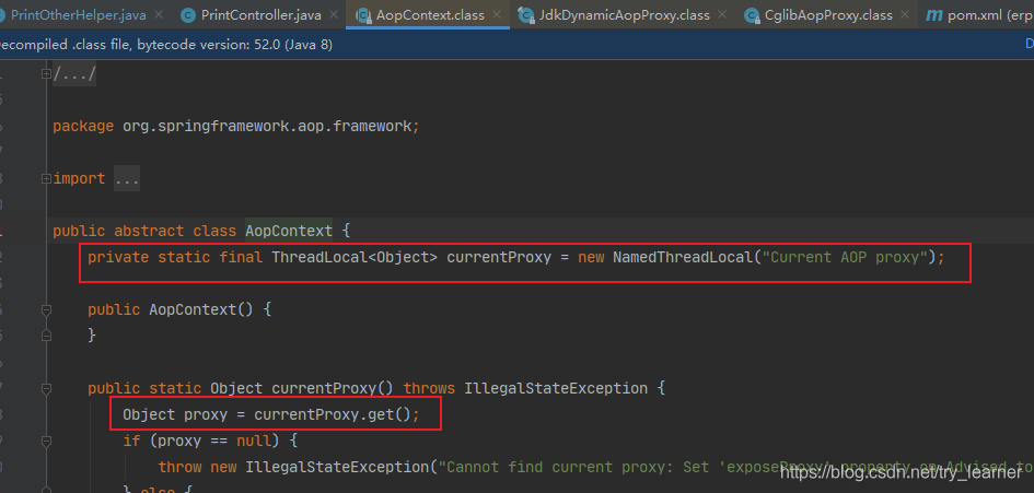 - 代理对象的获取其实是从线程的ThreadLocal中获取的,如下: