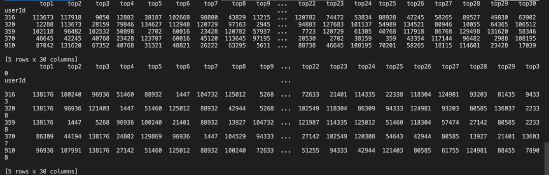 下面,我们对K取值30,所有的用户都有30个相邻用户,代码如下: