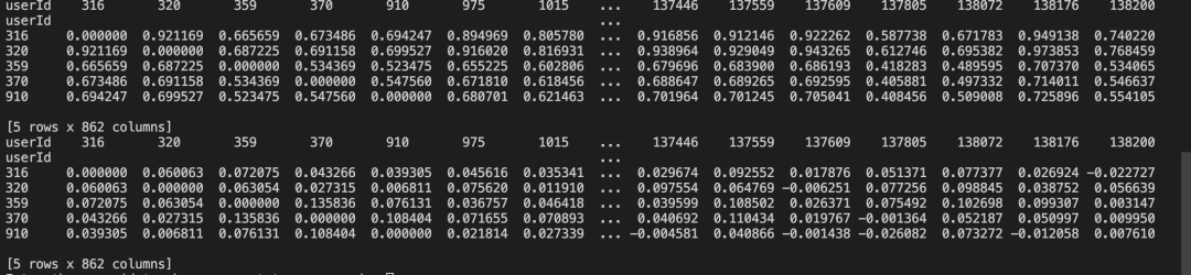 接着,我们开始计算用户之间的相似性,代码如下: