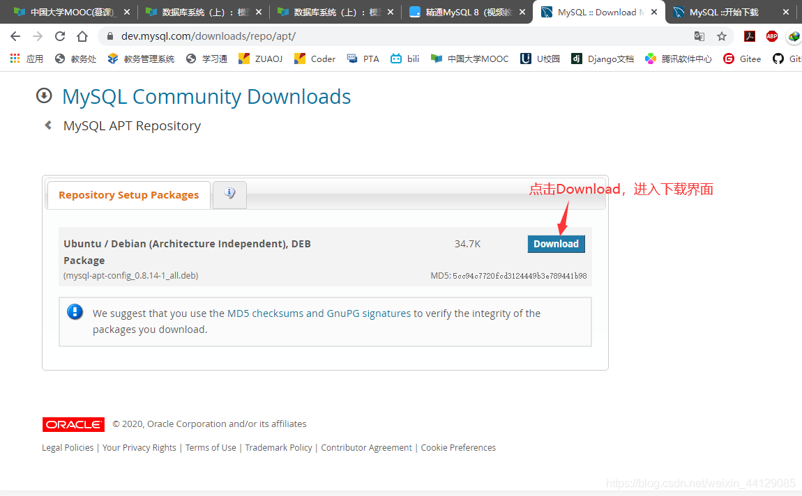 首先访问 https://dev.mysql.com/downloads/repo/apt/ 获取配置包下载地址