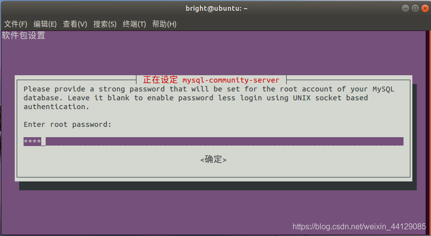 y继续执行,弹出MySQL 8安装对话框,按回车键确定,进入设置root密码的对话框 - 下载速度可能有点慢请耐心等待,可以尝试更换APT数据源,国内的镜像网站有很多,比如阿里云、清华大学镜像等等,至于如何更换,请自行百度。