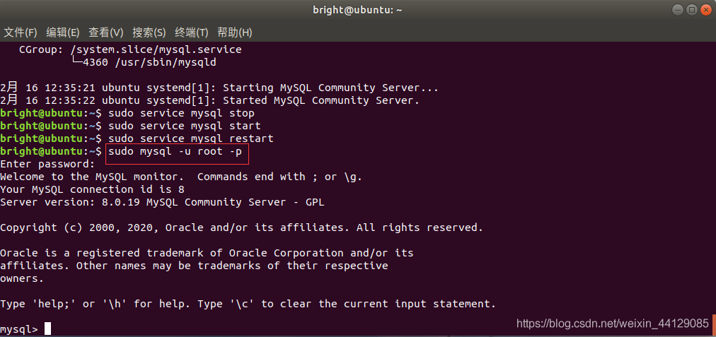 我们采用APT方式在Ubuntu系统中安装MySQL,这种方式安装的版本都是最新的版本,目前是8.0.19,通过这种方式安装好之后,所有的服务、环境变量都会启动和配置好,无须手动配置。