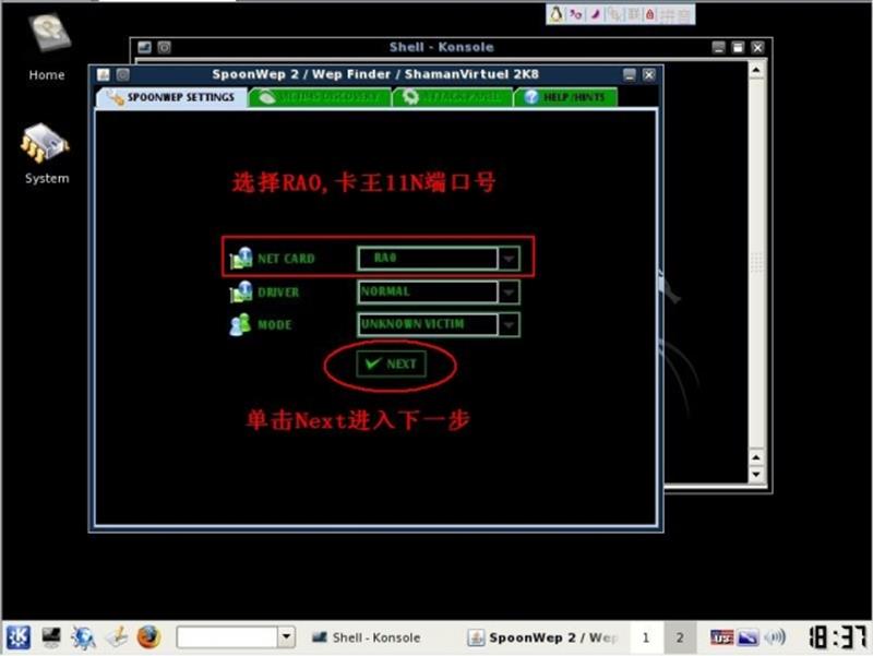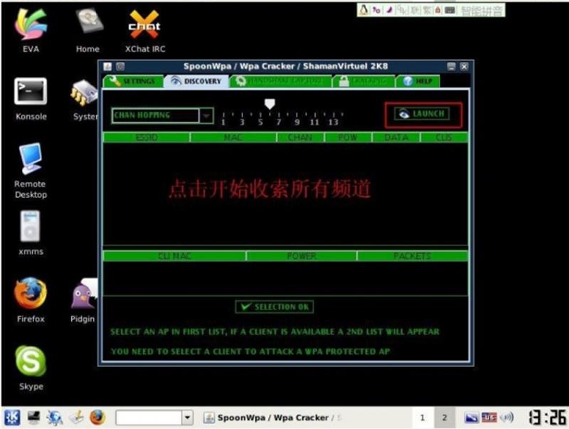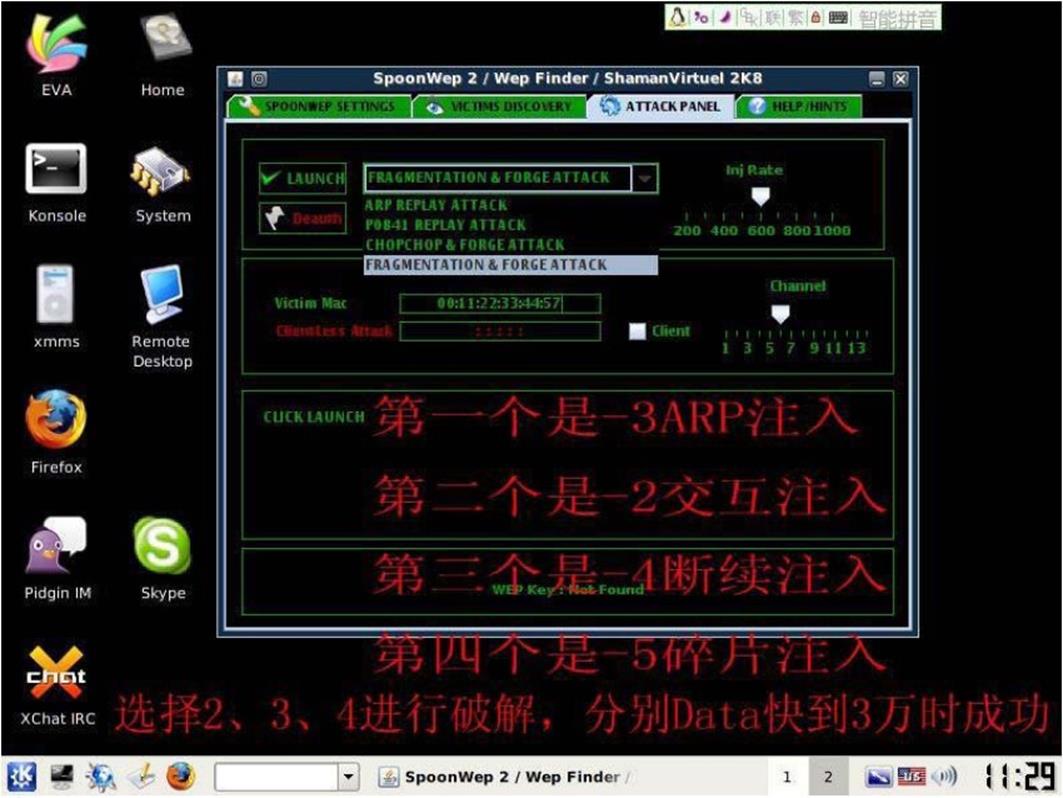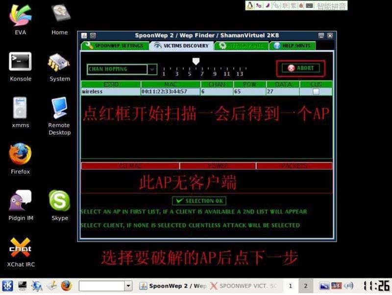 下面我们将开始使用启动spoonwep程序开始破解WEP加密的无线网络.