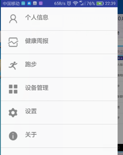 String [] lefttitles={"个人信息","健康周报","跑步","设备管理","设置","关于"};