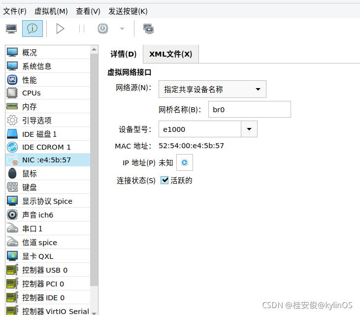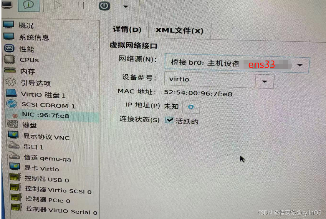 1、前置条件:安装好麒麟V10服务器操作系统、安装kvm、在kvm创建好麒麟V10系统的虚拟机