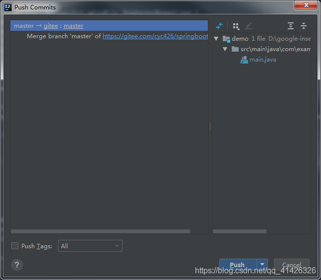 这个时候会跳出窗口,如果没有跳出我们可以自己选择push提交到云上,