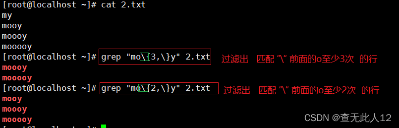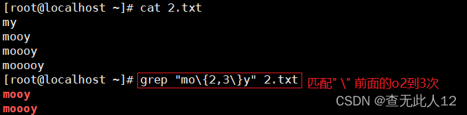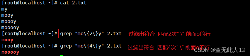 | 注: egrep(grep-E)、awk使用{n }、{n, }、{n,m}匹配时"{}”前不用加"\" | |